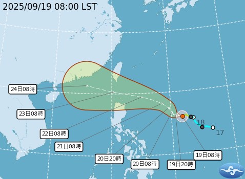 根據中央氣象署本(114)年9月19日8時發布輕度颱風樺加沙(編號第18號,國際命名RAGASA) 消息,颱風中心位置位於北緯15.9度,東經131.8度,以每小時11公里速度向西北西進行。颱風中心氣壓998百帕,近中心最大風速每秒20公尺,瞬間最大陣風每秒28公尺,七級風平均暴風半徑100公里。