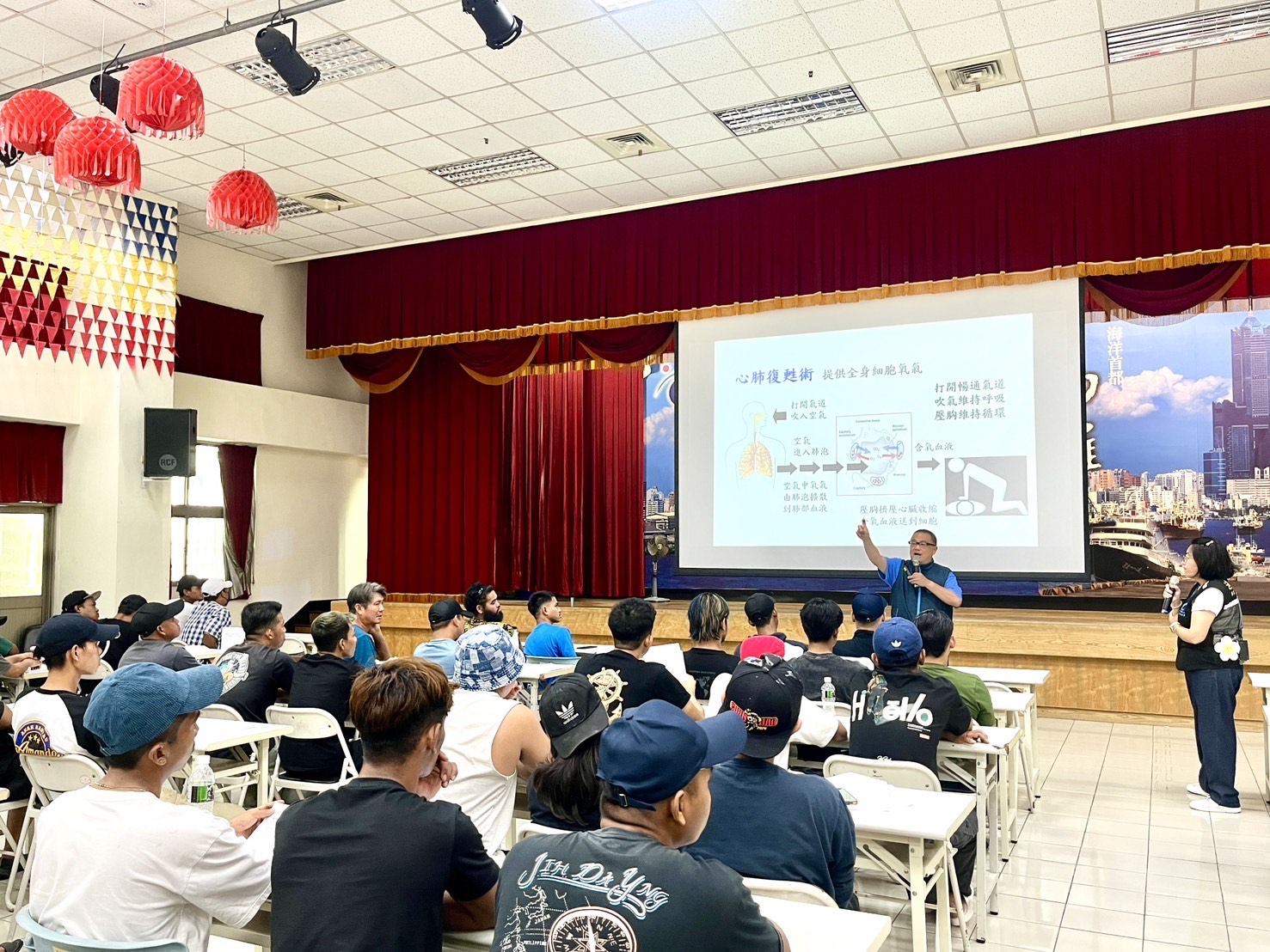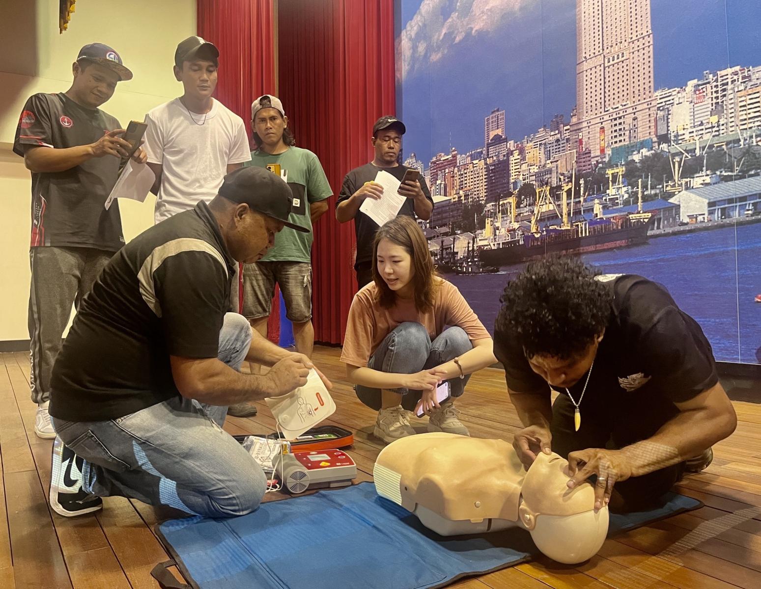 農業部漁業署與高雄榮民總醫院合作,辦理印尼語及菲律賓塔加洛語基本救命術訓練班,透過醫療團隊講解示範及讓外籍船員實際操作,熟悉基本救命術技巧。