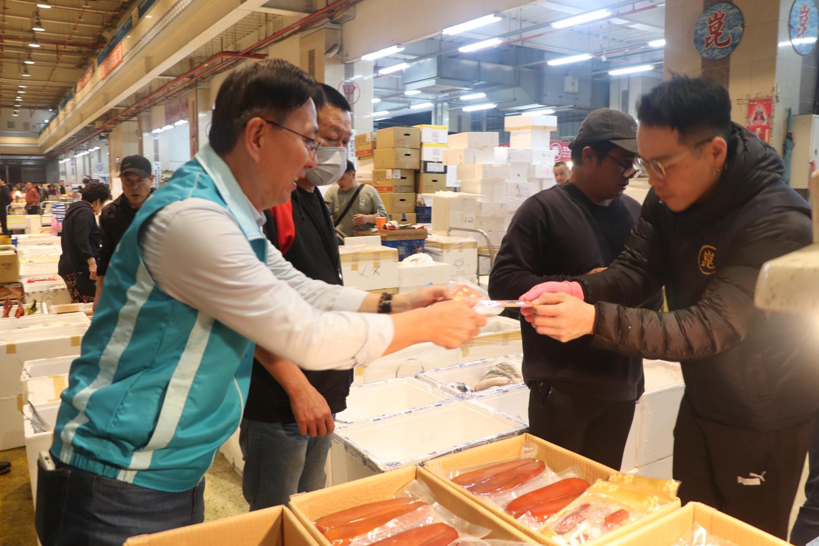 因應農曆新年將至,為確保年節期間水產品供應穩定與順暢,漁業署王茂城署長率同仁於5日凌晨至台中魚市場、6日凌晨至岡山魚市場,掌握魚市場交易、魚貨進場與供應、冷鏈運作及市場整備情形,確保年節期間民生消費所需水產品能穩定供應無虞,讓民眾安心採買、歡度佳節。