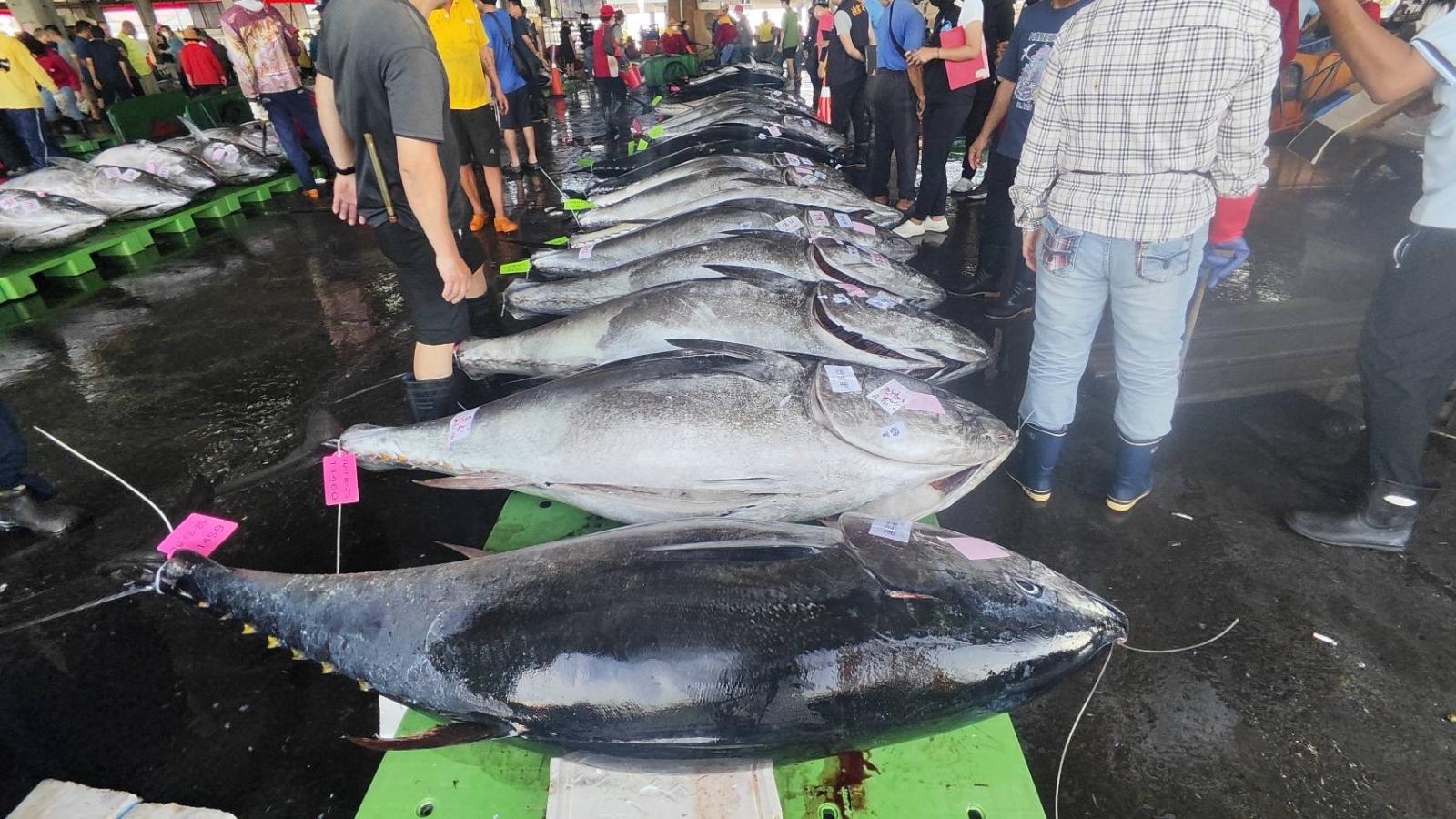 漁業署進一步表示,為避免發生短時間內大量黑鮪集中進港卸售,影響市場供需平衡,該署所公告本年單船單航次可使用之黑鮪標籤數量較114年調降,本年度黑鮪漁獲量達公告總漁獲配額70%以前,單船單航次標籤數量依噸級,CT2為8張、CT3為12張、CT4為15張,以維持作業彈性並兼顧市場供需平衡,穩定漁獲價格;當年度漁獲量達公告配額70%以後,調整為CT2為3張、CT3為5張、CT4為7張,以避免超配額捕撈。同時持續加強宣導與查核,輔導漁民遵守規定。