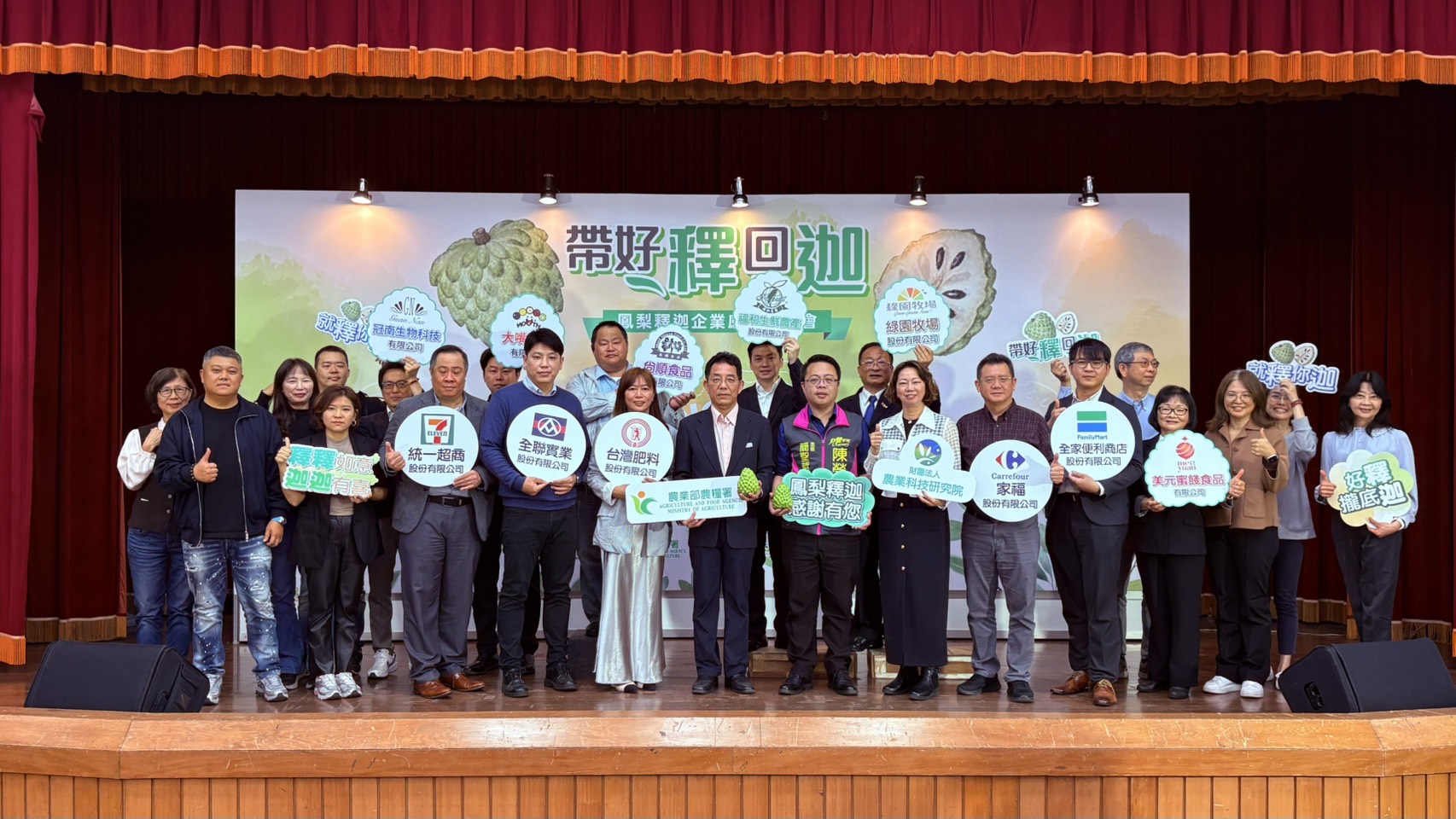今年度鳳梨釋迦收穫面積約2454公頃,產量約12761公噸,主要產區集中於臺東縣,因應產季供應增加,農糧署目前已經啟動多元產銷調節措施,包括媒合企業參與採購與行銷、擴大銷售通路及活動等,協助穩定農民收益。 為了展現產銷合作成果,農糧署18日舉辦「帶好釋回迦—鳳梨釋迦企業感謝活動」,表揚台肥、全聯、家樂福、統一超商及全家等企業協力推廣的成果,透過門市與線上平台販售鳳梨釋迦產品,讓消費者能便利選購優質國產水果,進而提升鳳梨釋迦的市場能見度。 農糧署提到主秘陳立儀表示,每年12月至隔年4月為鳳梨釋迦主要產季,民眾及機關企業不論送禮或自用,都可透過「臺灣優果鮮販企業團購平台」或是「農良直賣所」等多元通路選購,用實際行動支持臺灣農業。