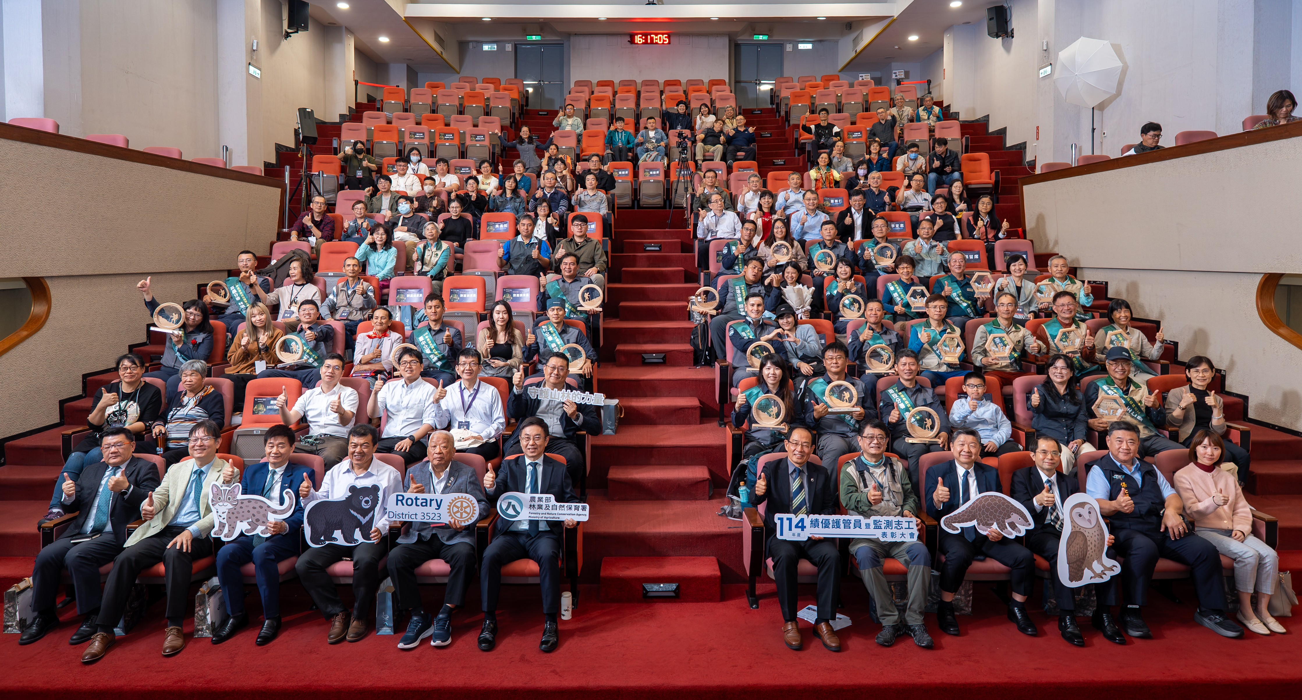 我國國有林地面積約162萬公頃,占臺灣全島林地8成以上,林地內相關業務都須仰賴森林護管人員長期投入。 為了肯定護管員的貢獻,林業保育署與國際扶輪3523地區特別選在「國際森林日」前夕舉辦表彰大會。林業保育署署長林華慶表示,今年共從1085名護管人員中選拔16名績優代表,不論是盜伐防範、森林火災撲救、野生動物救援及森林生態調查等,都展現專業與使命感;部分獲選者更將無人機、自動監測相機等科技設備應用在各項業務,突破傳統林業思維。 此外,林業保育署這次特別表揚從286名國家森林調查監測志工中評選出的8位傑出志工,感謝他們對臺灣森林環境的無私奉獻,也期盼未來能有更多人加入,共同打造橫縱交織的森林保護網,讓守護山林的力量更加強大且多元。