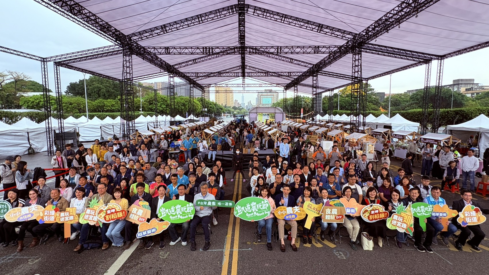 為了讓都市民眾也有機會親近農村文化,農業部3日在凱達格蘭大道及總統府前北廣場舉辦「凱道農玩節」,活動以「台灣農產唯一選擇」為核心,將東臺灣的稻草地景藝術移師凱道,現場設置由五百個蔬果籃構築而成的「蔬果迷宮」,同時集結全台54個攤位的「小農市集」,打造最具規模的農業主題樂園。 農業部部長陳駿季在開幕活動中,也帶領現場貴賓一起手作醃脆梅,希望大家在體驗過程中,感受雙手與土地產物的連結,更能理解每一口酸甜背後,都是農民辛勤耕耘與守候時節的成果。 農業部提到,這次活動也重現農村互助文化的「割稻飯」共食慶典,讓熱騰騰 的米食香氣在凱道上串聯起跨世代的情感記憶,同時透過21場深度「食農教育課程」與「驚喜三重送」集章闖關任務,鼓勵民眾以實質消費支持農民,共同實現農業與環境共榮的永續願景。