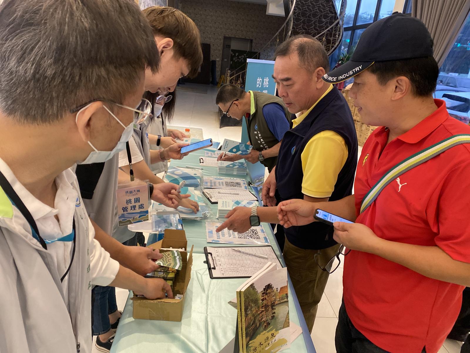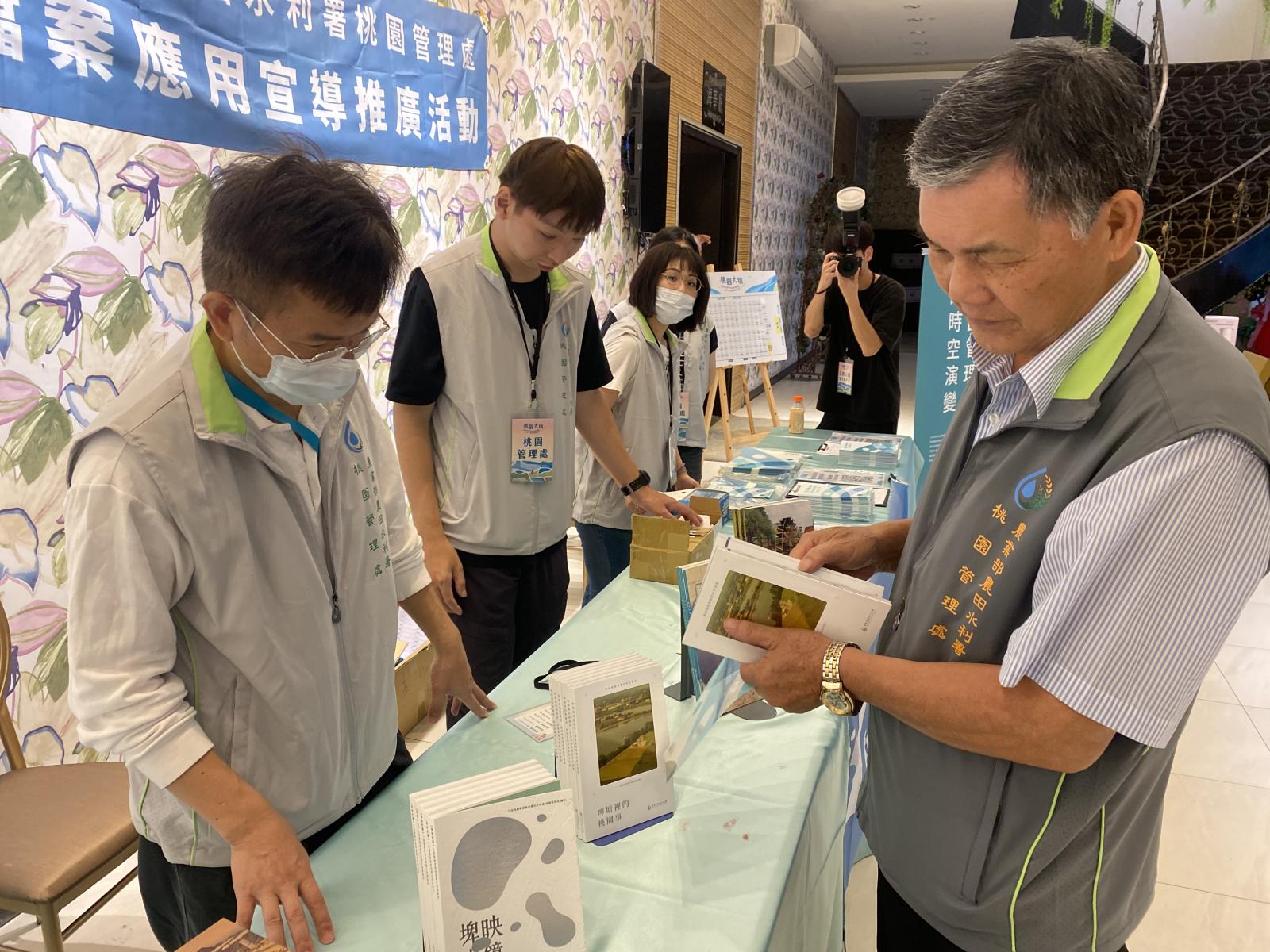 現場由水利事業基層人員及受獎人員共同參與,人聲鼎沸。陳列多項檔案應用叢書及檔案應用文宣,透過本次宣導活動,提升來賓對檔案應用的認識。