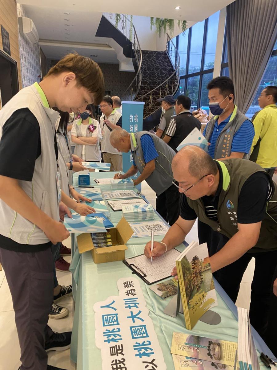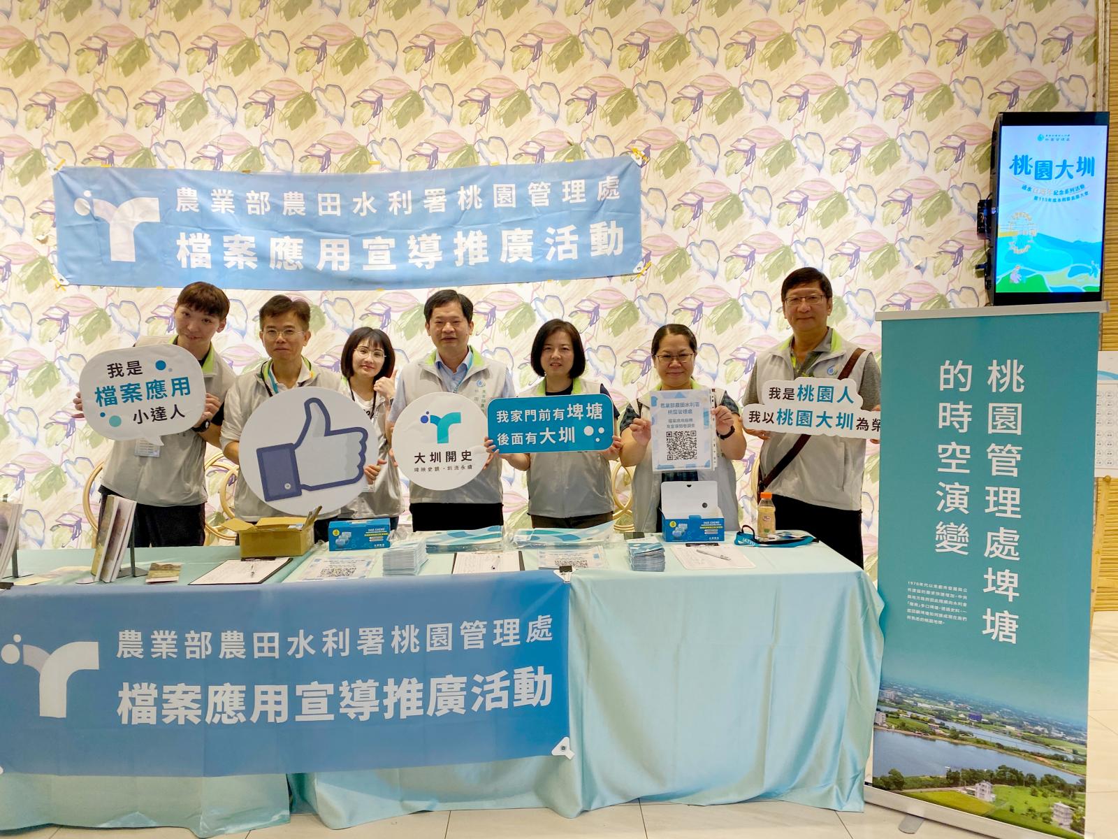 113年6月6日(四)結合本處所舉辦「慶祝桃園大圳通水百年紀念暨113年度水利節表揚大會」活動,於海豐海鮮餐廳設攤,向參與來賓進行檔案應用之宣導。