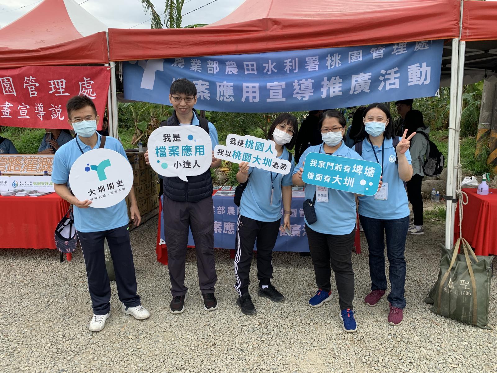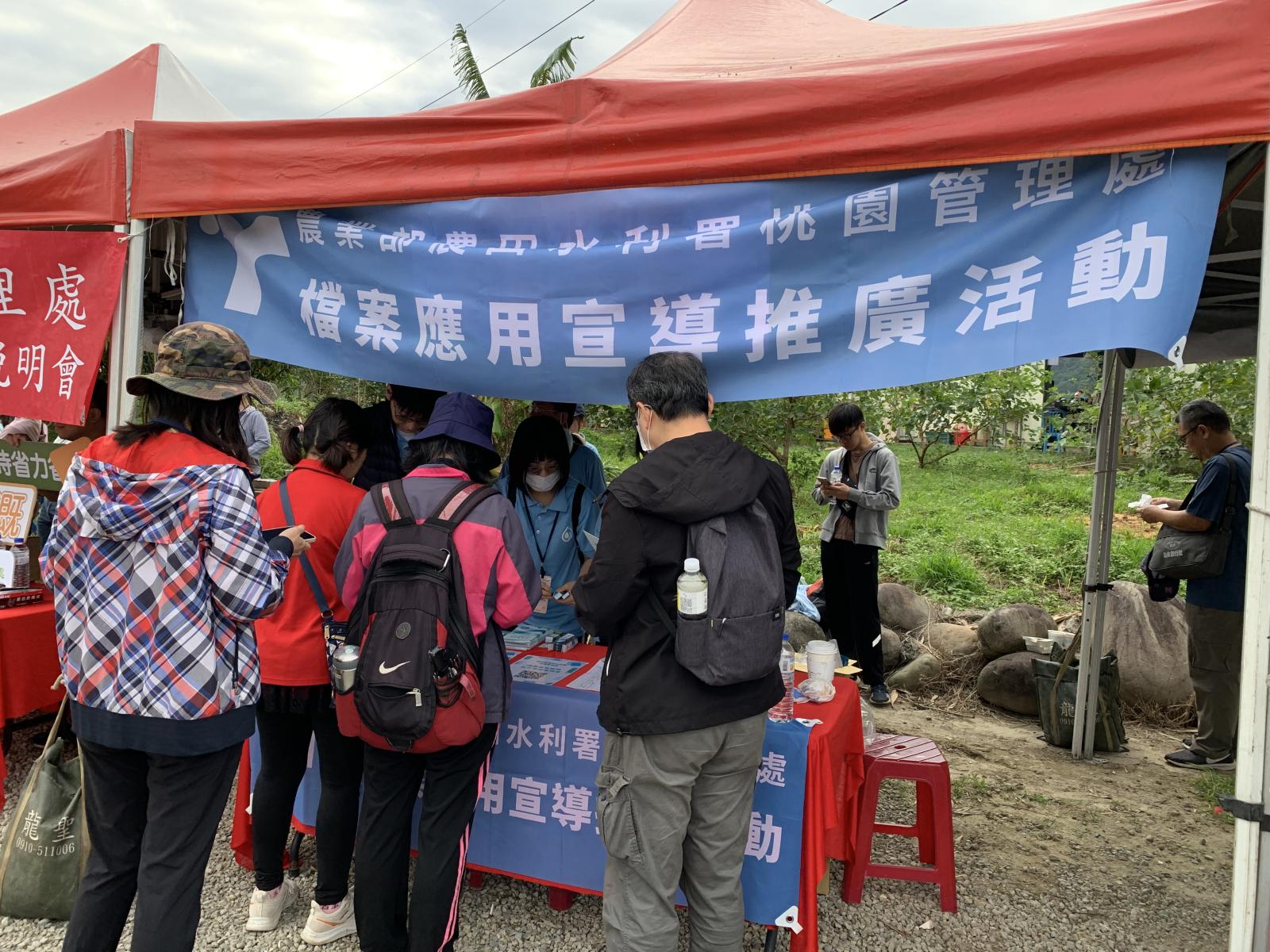 112年10月14日(六)結合本處所舉辦「愛水齊步走,農田樂悠遊」健走活動,於大溪中庄調整池設攤,辦理本處檔案應用宣導。